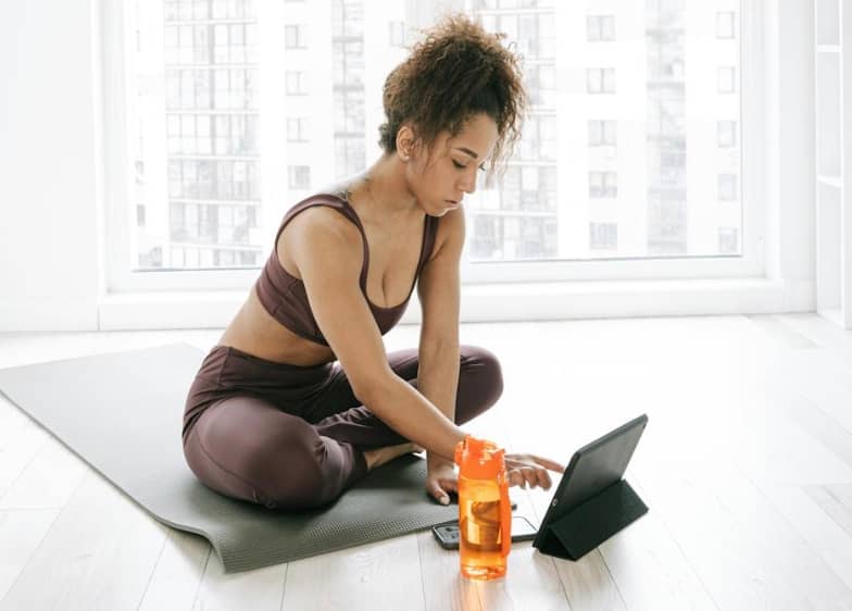 - 3 guided strength workouts per week (bodyweight, bands, dumbbells)